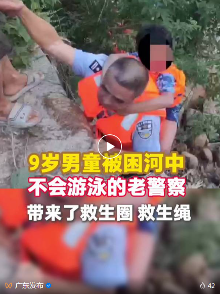 抵达男孩身边后,马伟生发现男孩身上只有一个小小的游泳圈,又主动将身上唯一的救生圈让给男孩。