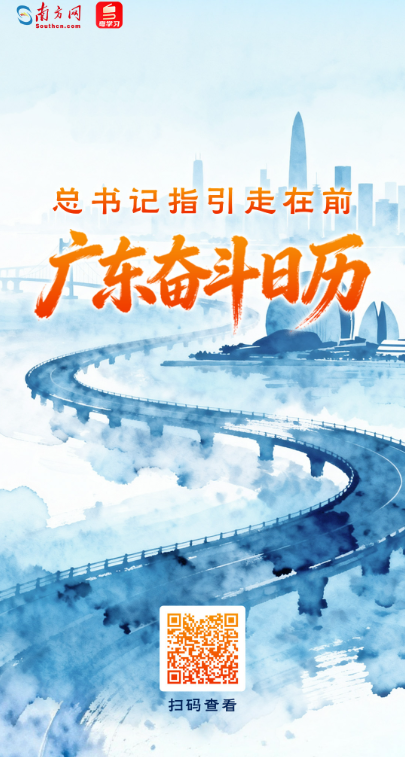 2025年12月31日,国家主席习近平在二〇二六年新年贺词中鼓舞和激励亿万人民“拿出跃马扬鞭的勇气,激发万马奔腾的活力,保持马不停蹄的干劲,一起为梦想奋斗、为幸福打拼,把宏伟愿景变成美好现实”。新年新气象,奋斗正当时。2026年1月1日,南方网、粤学习客户端推出《总书记指引走在前——广东奋斗日历》,记录党的十八大以来习近平总书记历次视察广东的足迹、嘱托,展现广东沿着总书记指引的方向奋勇前进,逐步将总书记的战略擘画转化为南粤大地上的生动实景: