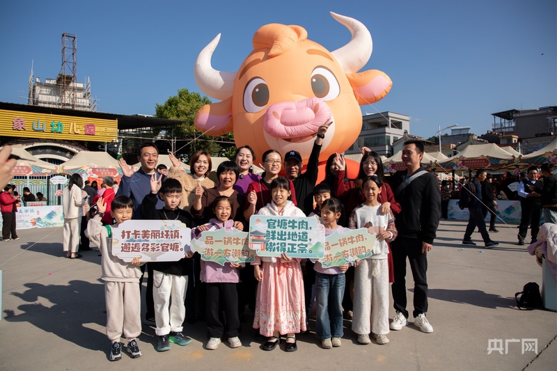 市民群众与“官塘牛”IP形象合影(央广网发 主办方供图)