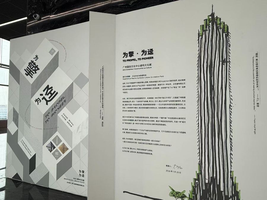 不仅如此,广州国际文化中心构建的还是一个以文化为核心驱动力的产业生态系统。正如与招商会同期开幕的“为擎为迳——广州国际文化中心建构文化展”策展人杨岩所阐释的:“擎”代表文化驱动的发动机,集成资源与组织、能力与机制;“迳”代表文化可抵达的路径,是建构与生成、价值与未来的可能性。这个配套展览着重探讨了“文化如何被建构”,以及如何推动文化从静态的陈列转变为可进入、可交互、可生产的动态系统。而广州国际文化中心本身,正是这一理念的实践。