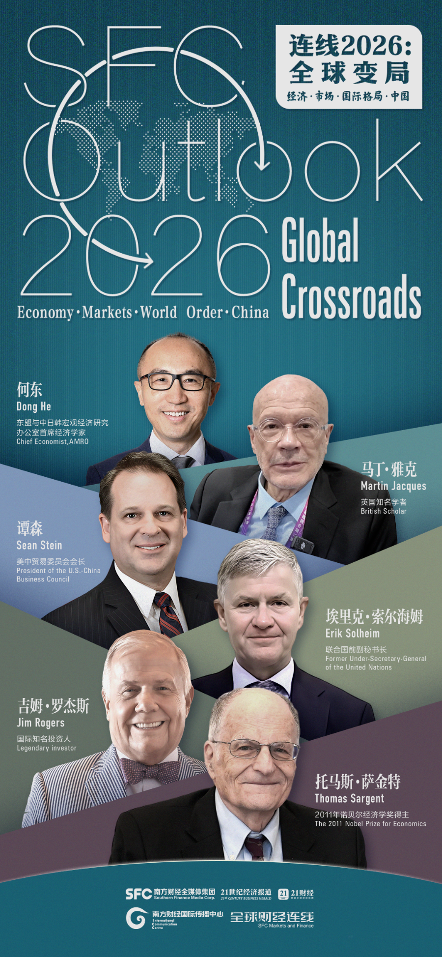 “连线2026:全球变局”汇聚全球顶尖经济学家、学者、投资者与政界领袖,立足时代前沿,纵论全球经济走势、金融市场变局、世界秩序演进与中国发展路径。通过深度对话与前瞻洞见,本系列力图勾勒未来数年的宏观图景,洞察决定世界发展的关键力量。