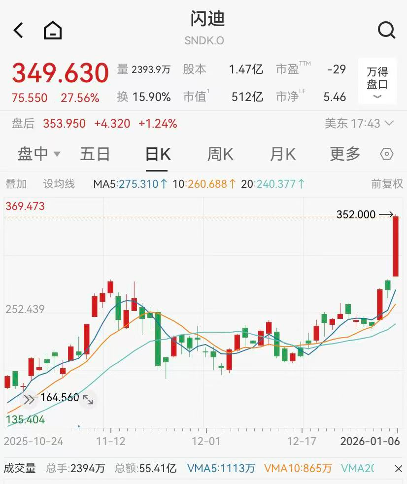 存储概念股集体大涨,闪迪飙升超27%,股价创盘中历史新高,最近5个交易日累计涨幅高达43%;美光科技上涨10%,再创历史新高,总市值突破3800亿美元。
