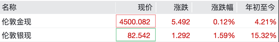 黄金白银继续狂飙,截至北京时间7:28,现货黄金站上4500美元,现货白银突破82美元/盎司,2026年开年以来已大涨15%。