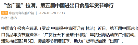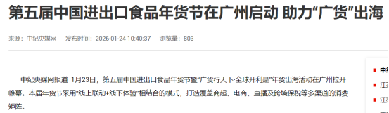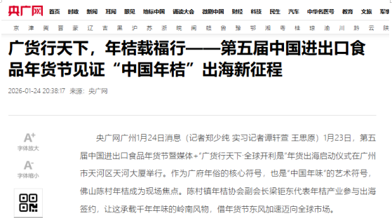 活动获得央广网、人民网、中国新闻网等中央及广东本地主流媒体的集中报道。媒体报道提及,本届年货节既是“广货”出海、走向世界的重要窗口,也展现了中国食品产业迈向高端化、国际化的强劲动力。在媒体的关注与多维解读下,这场年货节已超越一般经贸活动,成为“广货”强势出海、中国食品产业国际化进程的生动缩影,更承载了中国品牌、中国年味与开放共赢理念的全球传递。