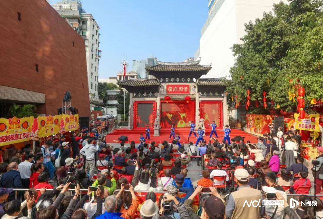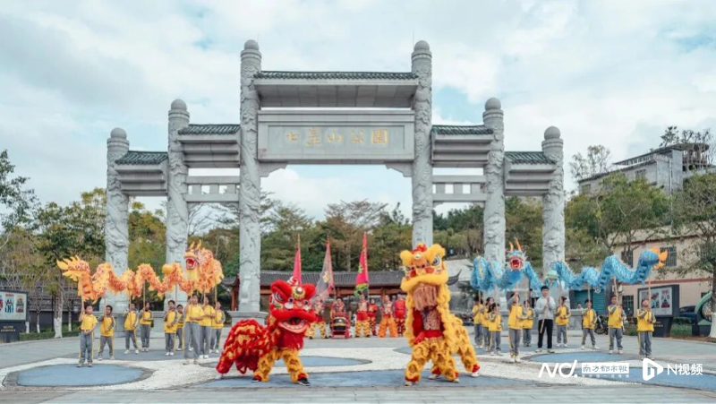 今年春节,岭南印象园将举办“昼非遗·夜千灯”春节双重盛宴活动。关羽狮即将在岭南印象园带队出巡,狮头高达3米,狮尾延展威武庄重,金龙、凤凰、醒狮与大头佛同游;四头南派醒狮高低腾跃,展现广府醒狮“采青”“攀高”等经典招式,在地道锣鼓点中,舞出纯正的广东年味。夜幕降临,客家鱼灯与游龙穿行巷弄巡游,打铁花表演也将为游客带来“非遗+视觉”的双重盛宴。