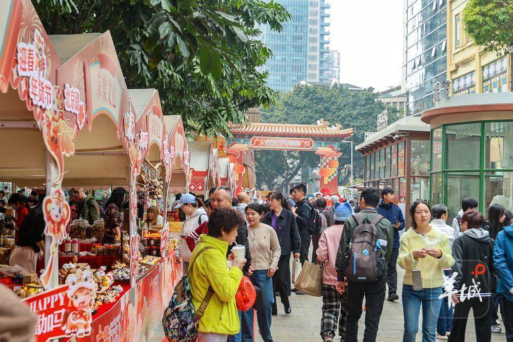 这里特设20个助农摊位,依托“百千万工程”文明集市·粤飨集平台,湛江腊肠、汕头海味、云浮礼饼等特色农副产品整齐列队。消费帮扶与广货推广在此悄然合一,让年货不只有年味,更有深情。一旁的“北京路的老字号故事”老照片展静立无声,宝生园、陈李济的历史光影在玻璃框里流淌——从卖产品到传文化,这条南段完成了最有分量的一跃。
