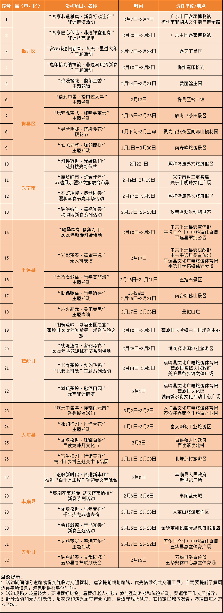 这一次,新春不只是看,更是每个人都能上场的全民大狂欢!从“群星贺岁·百姓同乐”舞台秀的才艺绽放,到“龙腾狮舞·鼓舞新春”齐欢畅的零距离互动沾福,再到“院士雅韵·彩虹盛景”大舞台的四级进阶赛事——在梅州,每个人都能成为年味的创造者,共同写下这个春节最生动的注脚。