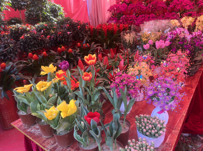 新春花市中各色年花缤纷齐聚,繁花似锦。逛花市、赏鲜花、选年礼,在盎然春意里感受热闹喜庆的客家年味。