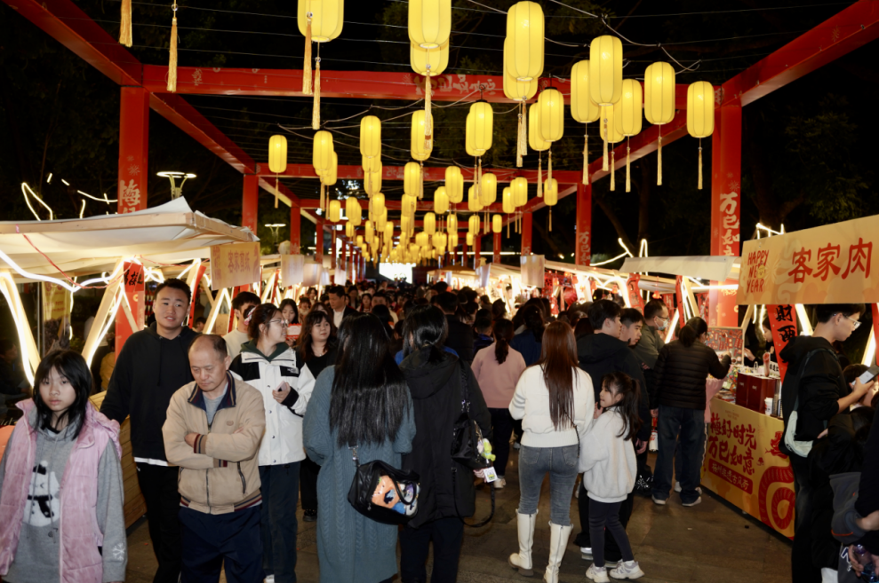 特设老字号区、非遗互动区、文创产品区、优选特产区、休闲美食区及古风街,是集特色选购、美食品尝、非遗体验于一体的新春休闲好去处,一站式感受客家圩市的热闹年味。