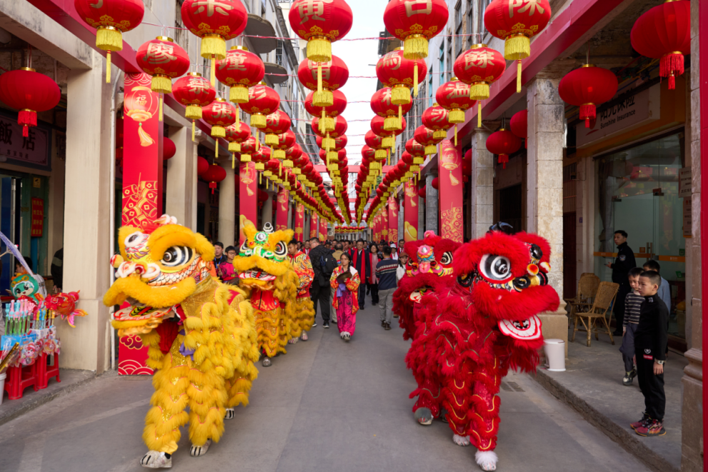 从院士广场的热烈开场,一路欢腾延伸至嘉应古城的街巷里。你可以欣赏舞龙舞狮的精彩演绎,见证醒狮点睛的仪式,跟随非遗巡游队伍,沉浸式感受传统文化的鲜活魅力。在电音嘉年华与烟花秀中迎来璀璨尾声,以最绚烂的方式为过大年活动圆满收官。