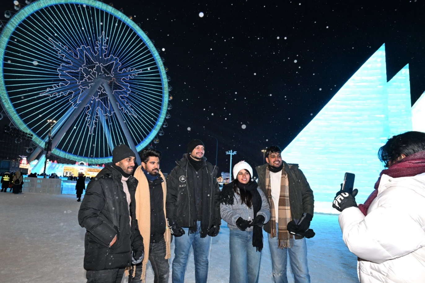 资料图:外国游客游览哈尔滨冰雪大世界