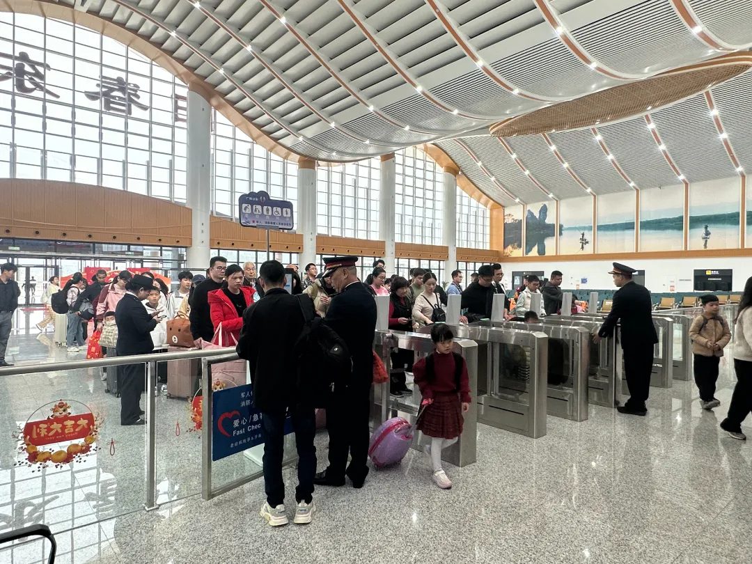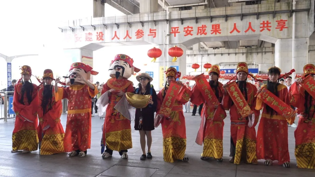 “没想到一出站就碰上‘财神’送礼,孩子高兴得直拍手。”从中山回阳江探亲的黄先生难掩喜悦。2月21日,江湛铁路阳江站、广湛高铁阳江北站热闹非凡,阳江山歌、高桩醒狮等非遗快闪活动亮相迎客,让刚到站的游客第一时间感受到阳江的热情与文化的脉动。