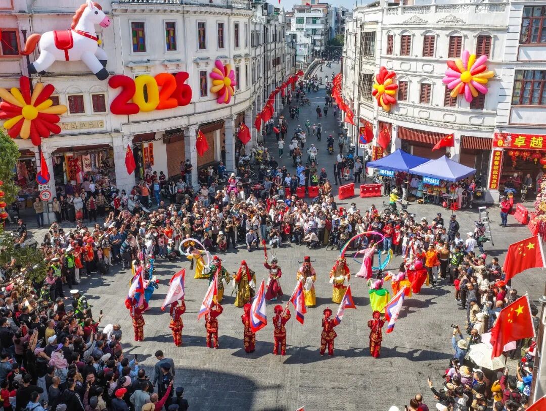 民俗巡游锣鼓喧天,年味正浓;街头巷尾红灯高挂,年味氤氲;山海之间游人如织、欢声满堂;商超餐饮客流如潮、烟火升腾……