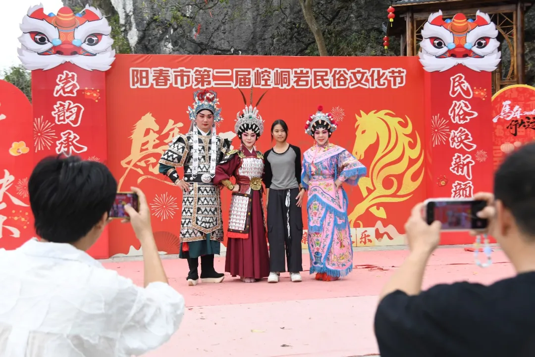 在阳西县西湖公园,连续七晚的文艺演出好戏不断,汇集舞蹈、音乐、粤剧等多种艺术形式,让市民游客乐享文化大餐。阳春市推出崆峒岩民俗文化节、春湾石林“登山飞马”等特色项目,醒狮闹春、打铁花等民俗精彩纷呈,《爱在春州》新春演唱会更燃动全城。各大景区因地制宜打造特色体验,沉浸式年味让游客步步有惊喜。