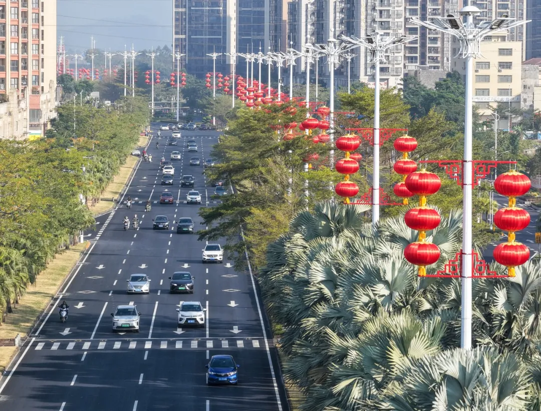 此外,阳江更下足“绣花功夫”,用心扮靓城市“颜值”。节前,全市开展专项整治行动,维护干净整洁的市容市貌环境秩序。漫步阳江街头,大红灯笼高高挂起,流光溢彩迎新春;公园广场、高速出入口、高铁站等节点焕然一新,洋溢着喜庆祥和的节日氛围。