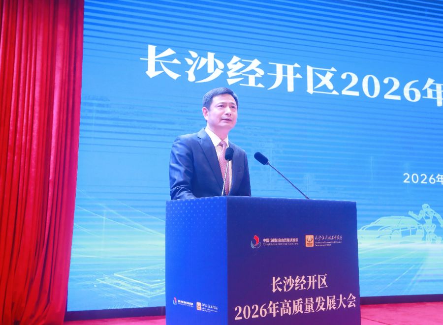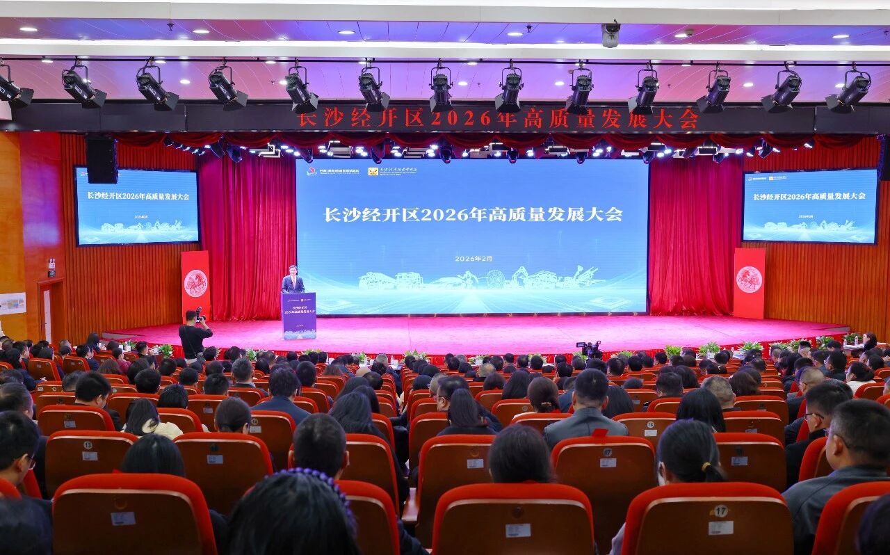 2026年2月26日,长沙经开区2026年高质量发展大会召开,邀请园区300家突出贡献企业及规上企业高管齐聚一堂、共谋发展,政企同心奏响高质量发展最强音。此次大会深入贯彻落实中央和省委、市委经济工作会议精神,全面落实省、市“两会”及近期系列重要部署,以“开局即决战、起步即冲刺”的奋斗姿态,表扬先进典型,发布重磅政策,部署全年任务,吹响奋进“十五五”、奋战“开门红”的嘹亮号角,动员全区上下凝心聚力、砥砺前行,为实现园区高质量发展注入澎湃动能、汇聚磅礴力量。