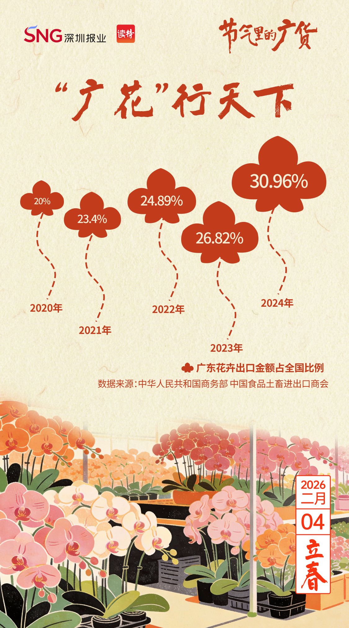 从迎春花市出发,广东人对花的热爱贯穿四季,浇灌出一个生机勃勃的产业。