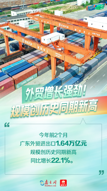 进出口双双增长超20%!今年前两月广东外贸实现“开门红”