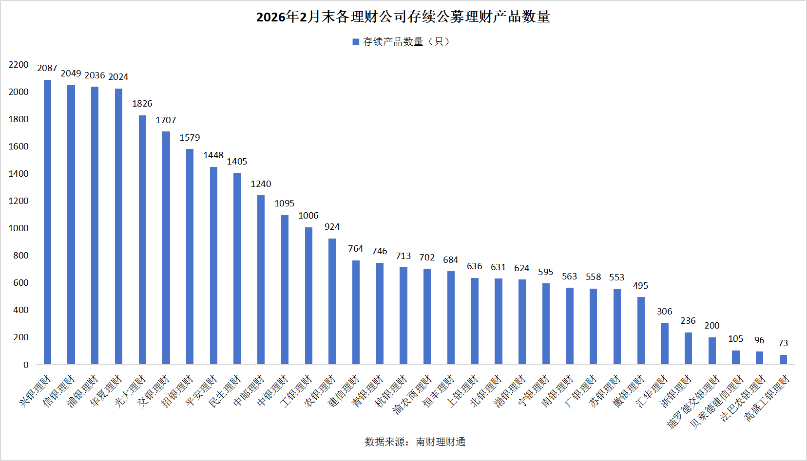 机构分布:兴银理财、信银理财、浦银理财及华夏理财四家机构存续产品数量均超2000只,分别为2087只、2049只、2036只和2024只。法巴农银理财与高盛工银理财存续产品数量均不足100只。