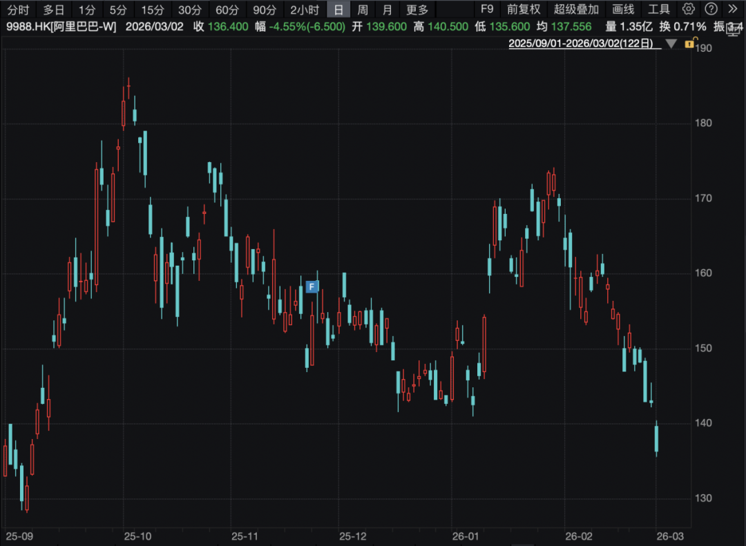 3月2日,港股科技板块延续弱势,多只龙头个股跌幅显著。 例如,商汤-W收跌9.37%,百度集团-SW收跌4.2%,阿里巴巴-W收跌4.55%,美团-W收跌4.62%,快手-W收跌3.34%,哔哩哔哩-W收跌3.44%。