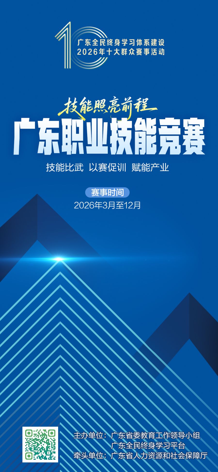 赛事的意义远不止于竞赛本身。十大群众赛事活动的举办,旨在以赛事活动为引擎激活全民终身学习体系——以赛促学,学以致用,用以促长。我们探索打通赛事活动牵引与学习赋能的良性循环,推动赛事活动成为动员社会参与、检验学习成果的理想平台,将每一次参与过程都转化为全民学习、终身学习的生动实践。在赛事中脱颖而出的优秀作品、人才,将被纳入广东全民终身学习平台的课程库与资源库。我们将通过不断优化学习生态与服务闭环,将人口优势持续转化为人力资本优势,为广东高质量发展提供坚实支撑和持久动力。