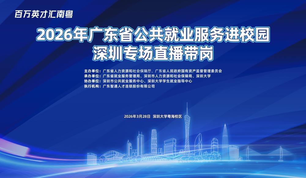 本次活动由广东省人力资源和社会保障厅、广东省人民政府国有资产监督管理委员会主办,广东省就业服务管理局、深圳市人力资源和社会保障局、深圳大学承办,深圳市公共就业服务中心、深圳大学学生就业指导中心协办,广东智通人才连锁股份有限公司执行。