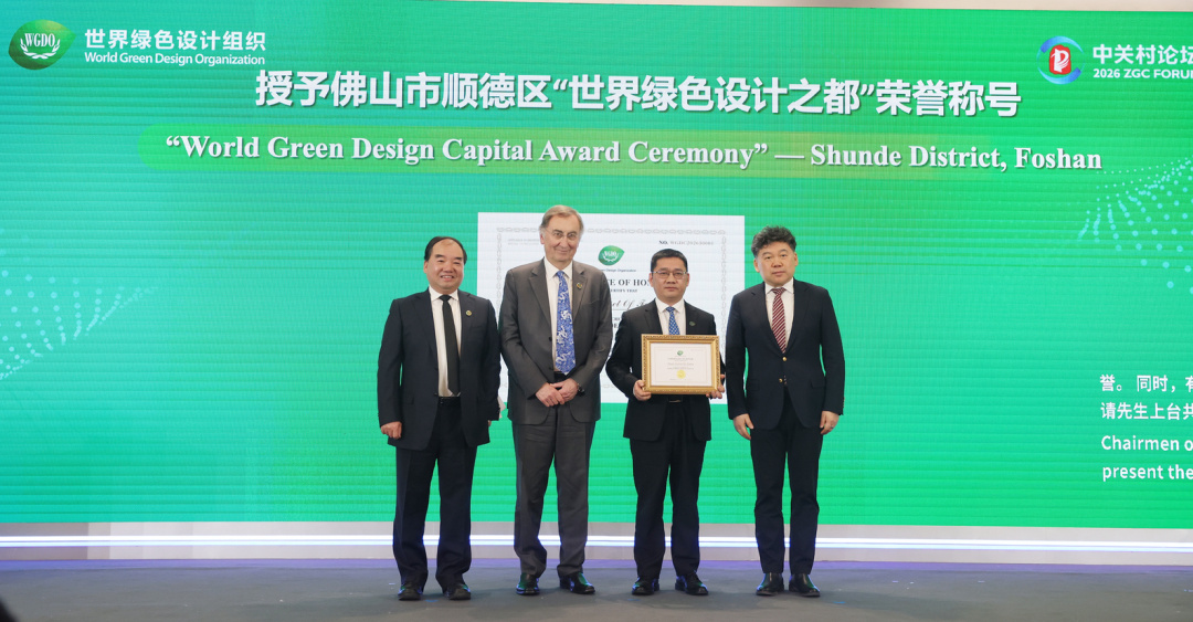 3月29日,2026中关村论坛·世界绿色设计论坛在北京举办。经世界绿色设计组织(WGDO)评审委员会评定,正式授予佛山市顺德区“世界绿色设计之都”称号。