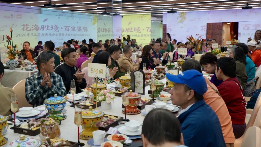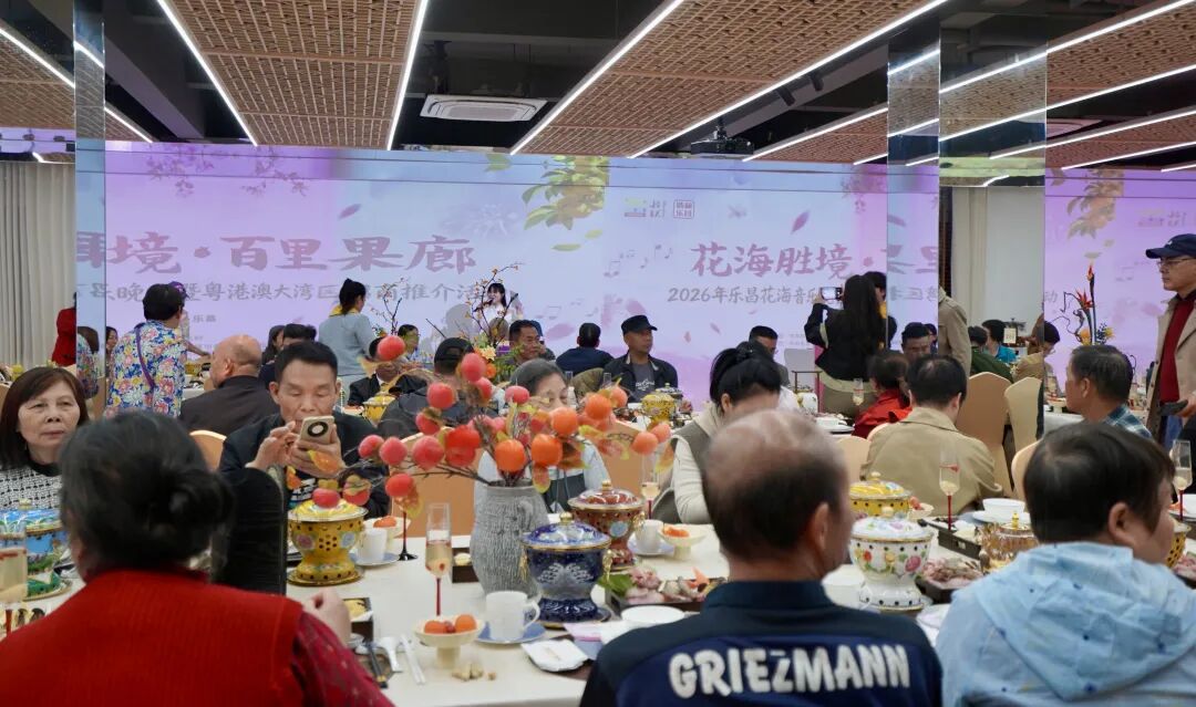 签约仪式后,乐昌特色“宫廷宴”与花海音乐晚会正式拉开帷幕。长桌上,新鲜的本地食材在精致的小火锅中香气四溢,还有北乡马蹄等乐昌特色农产品,让大家品味舌尖上的乐昌。晚会节目形式多样、内容丰富。既有童声绕口令、古典舞《能不忆江南》、戏曲舞蹈《晓春学子》等传统文化节目,也有歌曲《此生无憾》《轻舟情万缕》等音乐表演,舞蹈《一条大河》等节目则以优美舞姿展现自然之美与人文情怀。现场气氛热烈,掌声不断。
