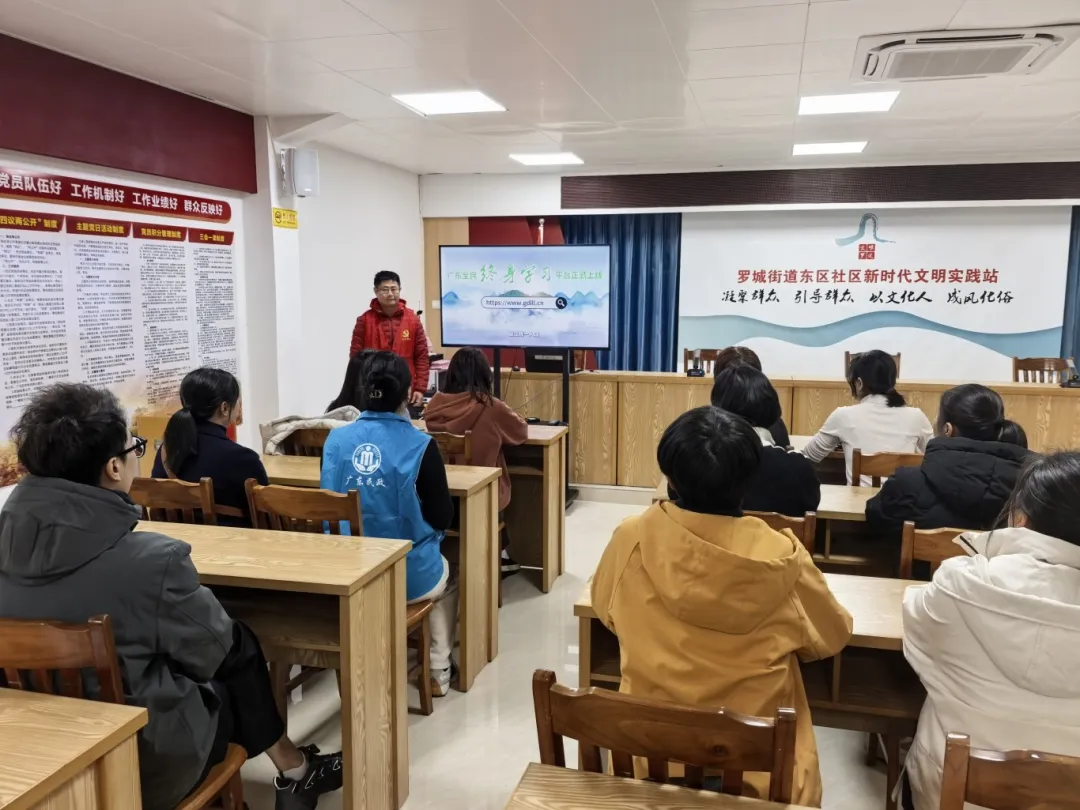 罗城街道东区社区、细坑社区新时代文明实践站开展广东全民终身学习平台使用专项培训,吸引辖区众多居民积极参与、主动学习。