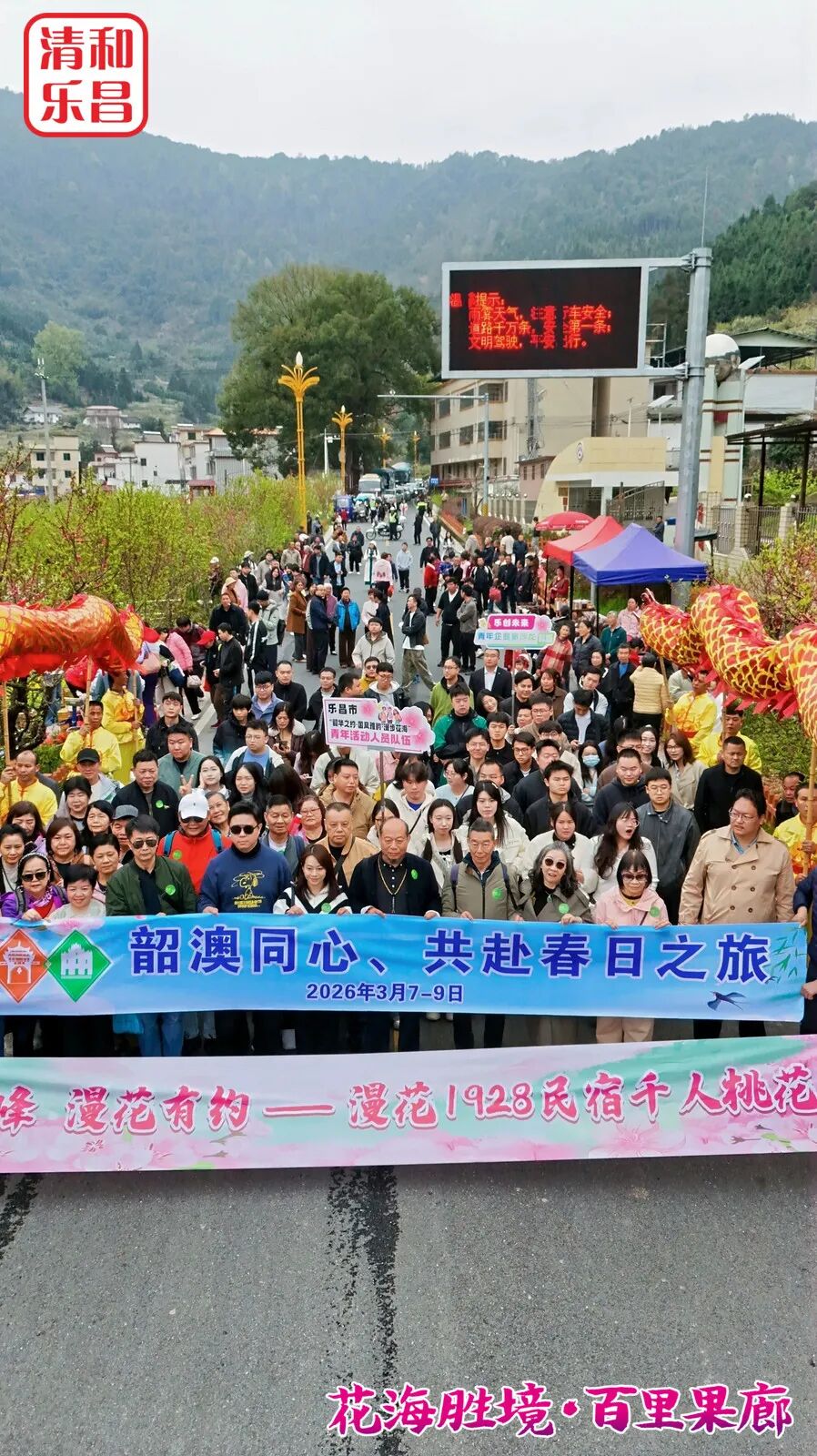 阳春三月,百花争艳。3月8日,2026年乐昌市“花海胜境·百里果廊”主题活动在九峰镇万亩花海中浪漫启幕。当漫山遍野的桃李花香遇上悠久的民俗文化与舌尖上的乡土美味,一场沉浸式的春日盛宴正等待着八方来客。