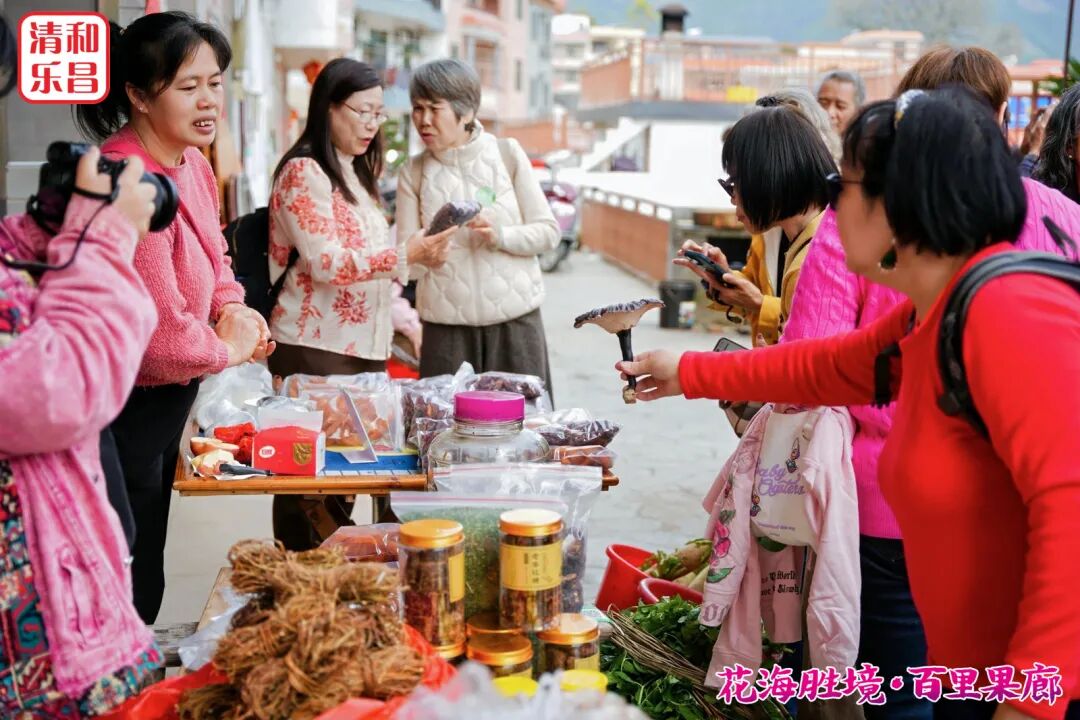 赏花之余,怎能错过舌尖上的乐昌?在“乐农优品·花海市集”,黄金柰李干、炮弹香芋、北乡马蹄等本土农特产品一字排开,游客们纷纷选购,在热闹的交易中,实现了文旅惠民与乡村振兴的双向奔赴。“九峰的桃李这么出名,这里的桃胶肯定也很不错。”一名游客笑着告诉记者,此次他不仅采购了马蹄、柰李干、菜干、番薯干等,还打算带些桃胶回去。