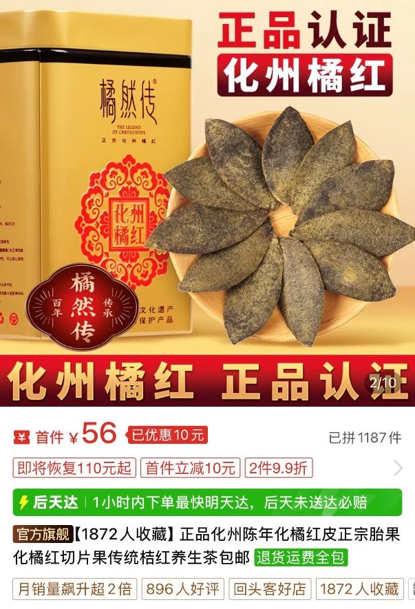 (化橘红是广东化州的国家地理标志产品,有“南方人参”的美誉。商家供图)