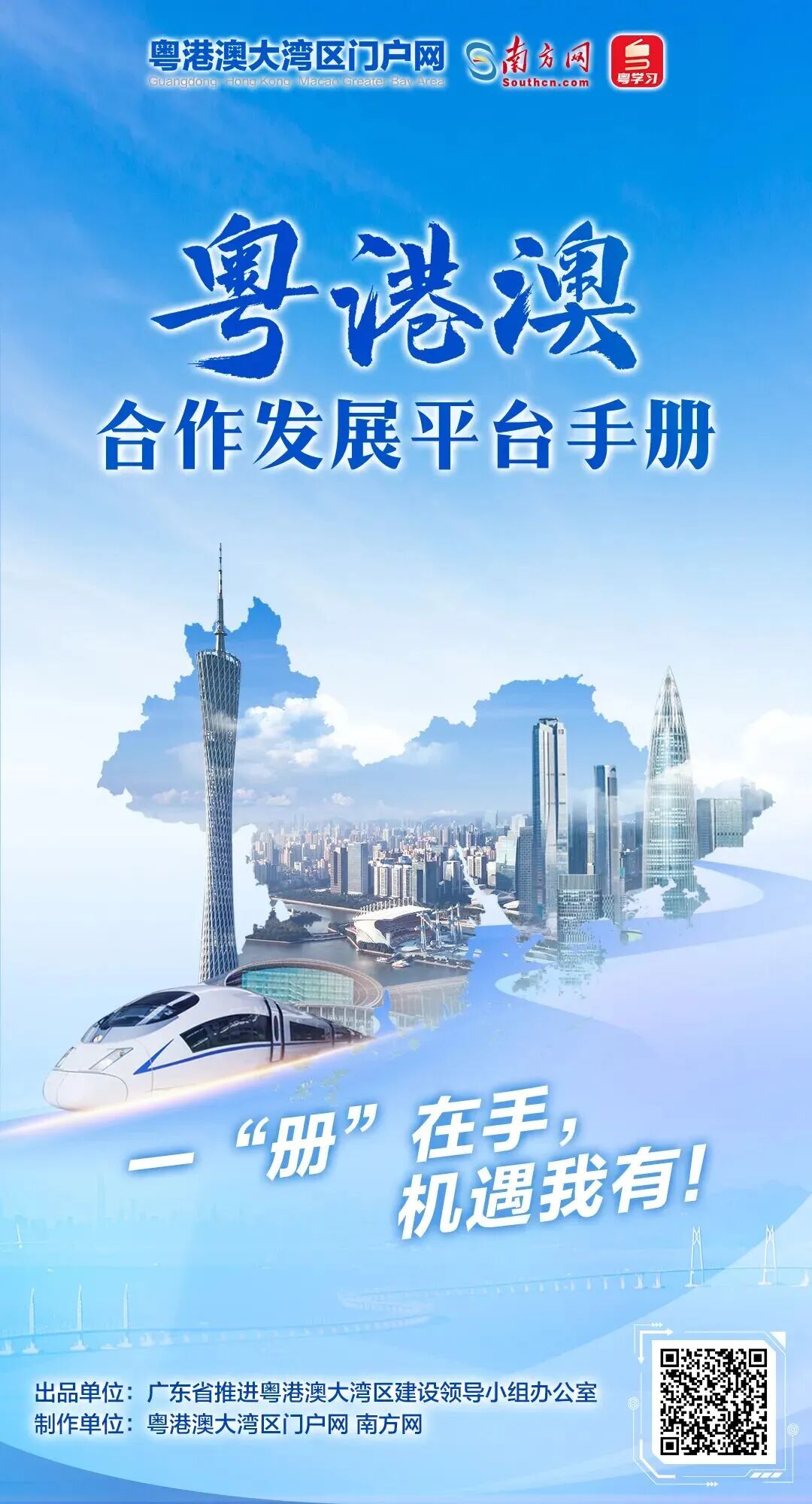 由广东省推进粤港澳大湾区建设领导小组办公室出品,粤港澳大湾区门户网与南方网联合制作的粤港澳合作发展平台手册2.0版本于今日(4月10日)全新上线!扫描海报二维码,一键了解大湾区合作平台的发展机遇、政策红利与营商环境。