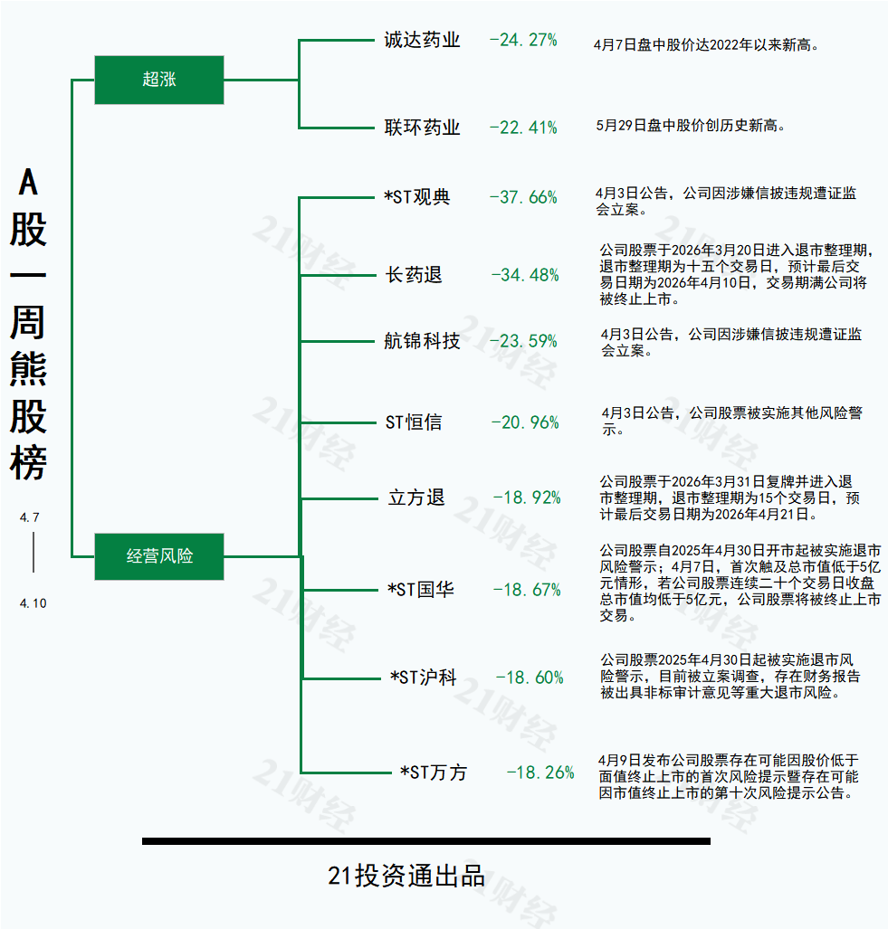 哪些个股领涨?哪些个股领跌?21投资通每周持续为你透视。