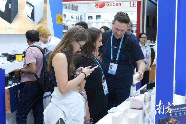 外籍采购商在芯烨展台驻足停留。
