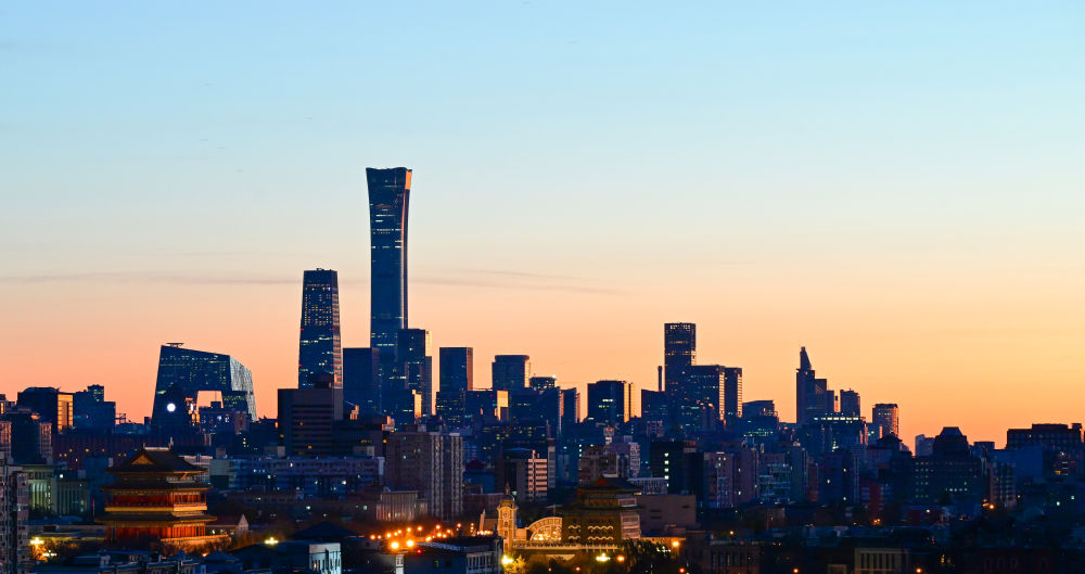 2025年11月27日清晨拍摄的北京正阳门城楼、正阳门箭楼和远处的CBD建筑群。新华社记者陈晔华摄