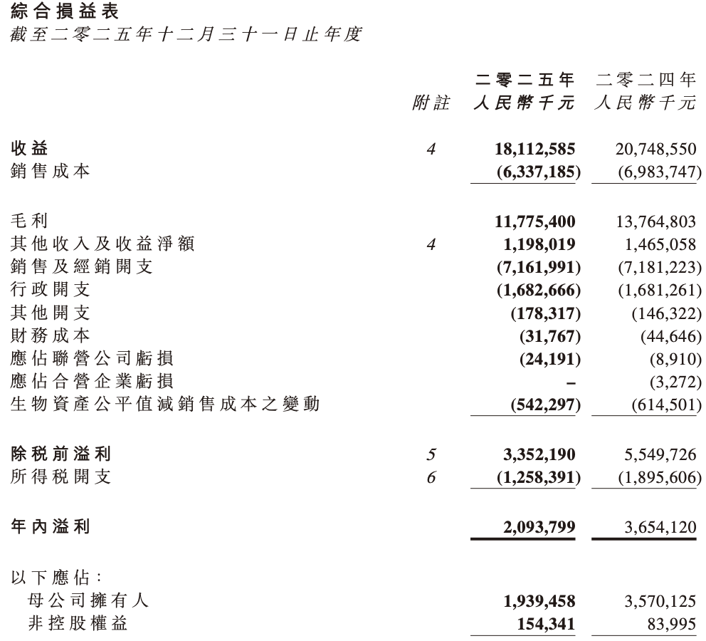需要看到的是,飞鹤的业绩继续承压。在2025年,飞鹤营收同比下滑12.7%至181.13亿元;净利润同比下滑45.7%至19.39 亿元。其中,在2025年下半年,飞鹤营收同比下滑15.9%至89.62亿元;净利润同比下滑44.6%至 9.39亿元。