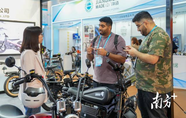 广交会上的江门造摩托吸引了众多境外采购商参观。南方+记者 钟志辉 摄