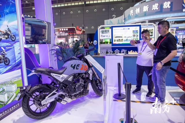 中非经贸博览会现场,广东馆展示的摩托车引发关注。南方日报+ 张令 摄