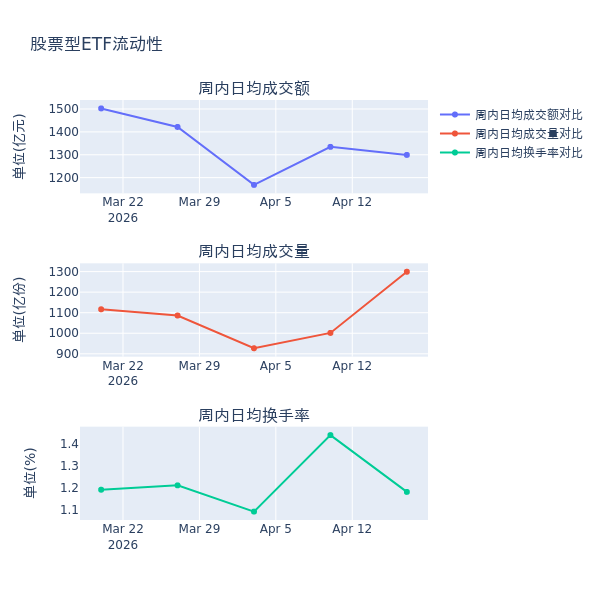 流动性方面,上周股票型ETF市场日均成交额减少2.6%,日均成交量增加29.7%,换手率减少0.27%。