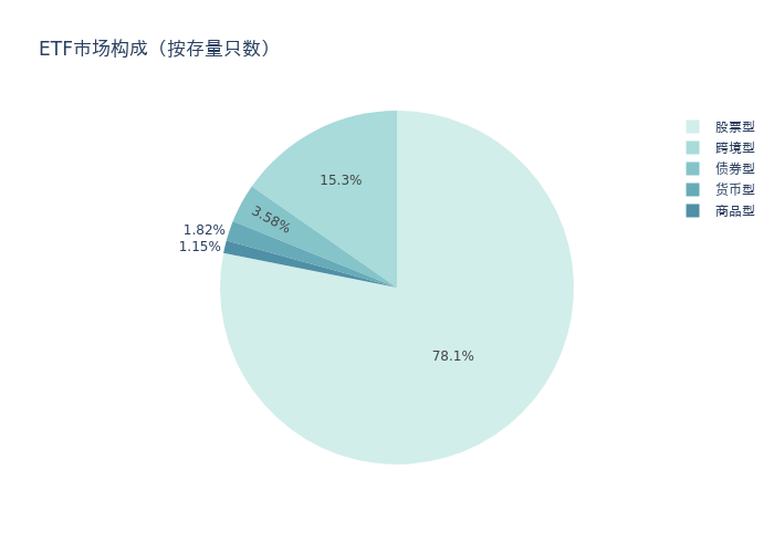 上周市场上存量ETF共计1482只,其中股票型ETF1158只,债券型ETF53只,货币型ETF27只,商品型ETF17只,跨境型ETF227只。