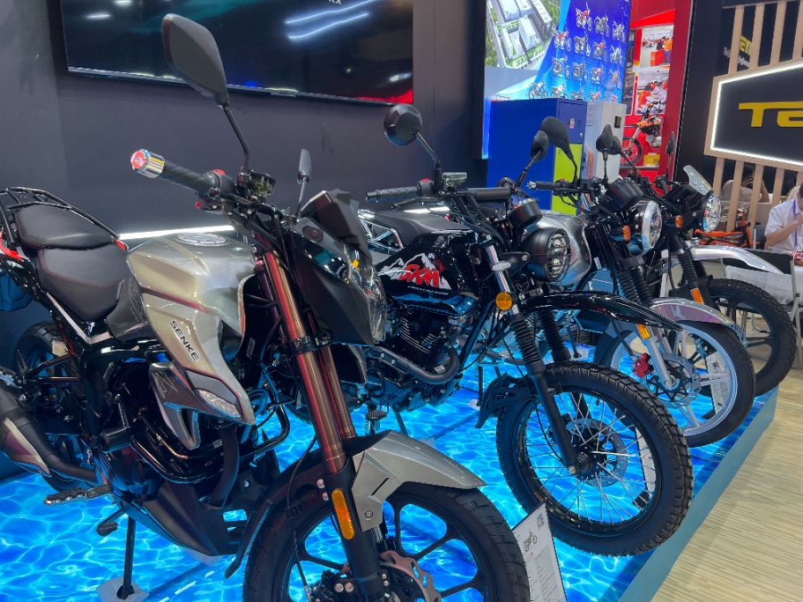 在广交会上,一众来自广东江门的摩托车企业积极求变,以拓展新的发展空间。江门正豪带来搭载增程混动技术的新一代电摩,满油满电续航达到880公里,比传统油车增加了一倍多,用户使用成本也几乎减少一半。唐赋兴向记者表示,这款车的增程技术灵感来源于比亚迪和腾势汽车的成熟方案,电机电控包括增程器都是自主研发,“增程式技术作为行业技术亮点,让我们在本届广交会上收获满满。”