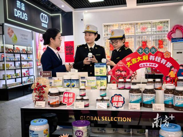 穗东海关关员到跨境电商保税体验店调研“前店后仓”业务开展情况。张海龙摄