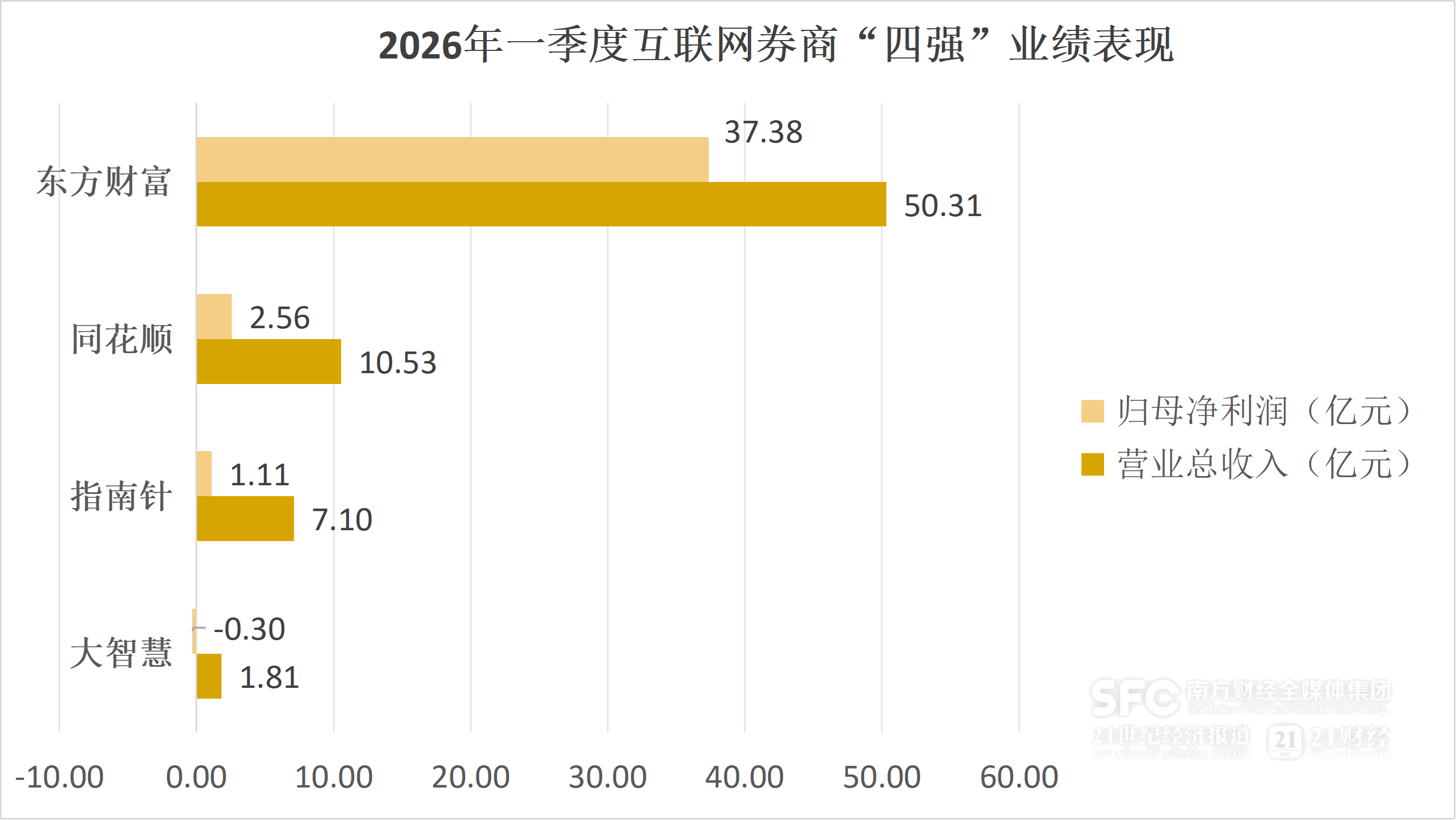 作为“四强”之中证券牌照最为齐全的公司,东方财富一季度业绩最大的“得”和“失”都与其“券商”属性高度相关。