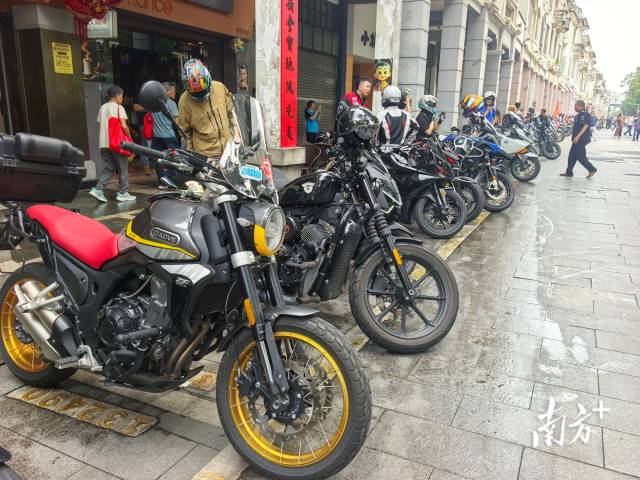 活动期间,停放在长堤历史文化街区的摩托车堪比车展。