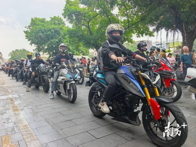 “江门摩托车氛围太好了!”中山摩友梁先生驾龄超过40年,当天一大早,他来到江门长堤历史文化街区,等待车队抵达。他发现这里早已人山人海,市集还有很多江门特色产品,“以后要多来江门骑行旅游”。