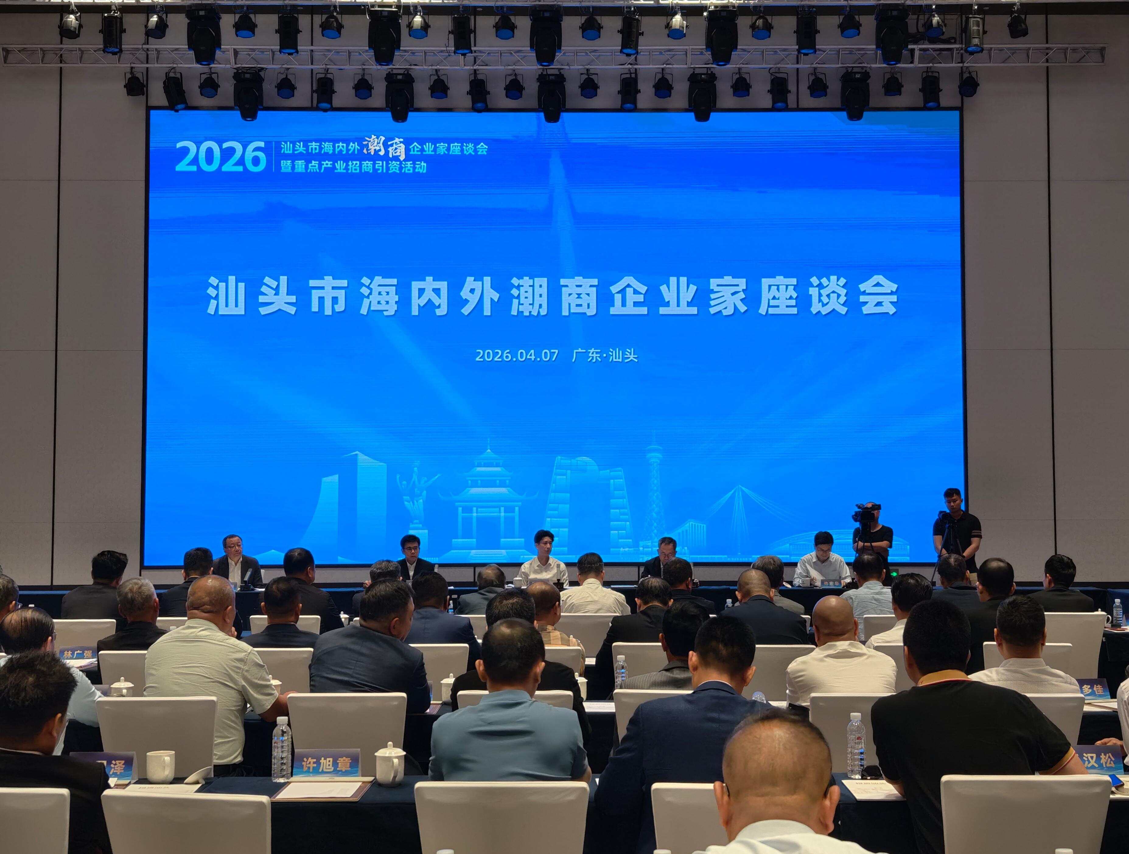 2026年清明节刚过,4月7日下午,南海之滨的汕头白天鹅酒店内,一场特殊的“家宴”在乡音萦绕中热闹举行。数十位海内外潮商翘楚代表,跨越山海而来,参加“2026年汕头市海内外潮商企业家座谈会暨重点产业招商引资活动”。