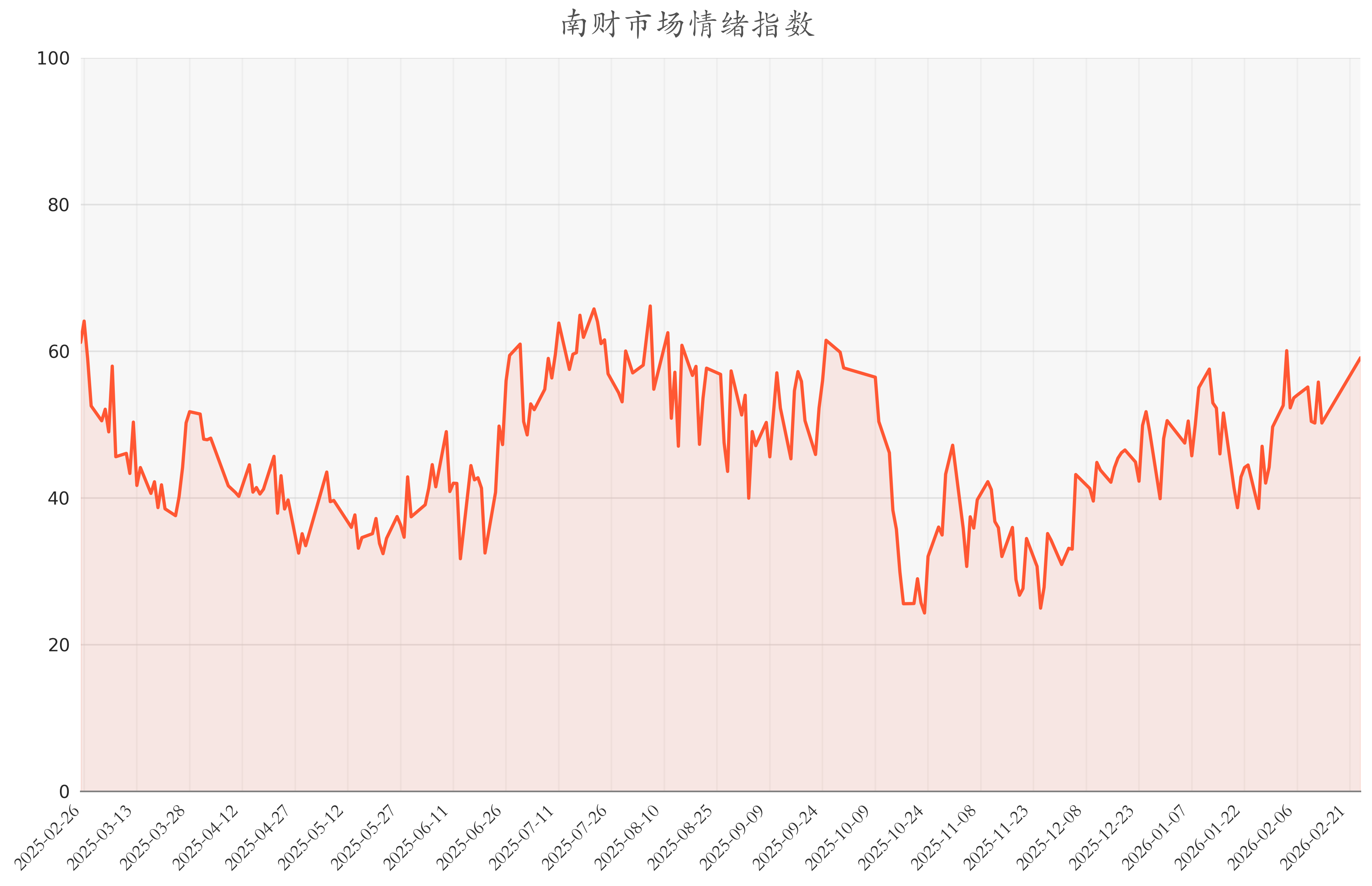 今日南财市场情绪指数为59.14,市场投资热度明显提升