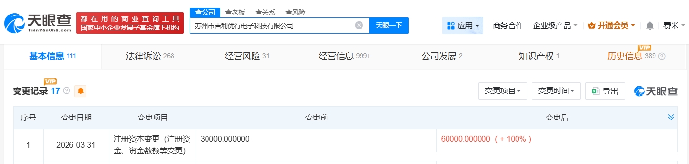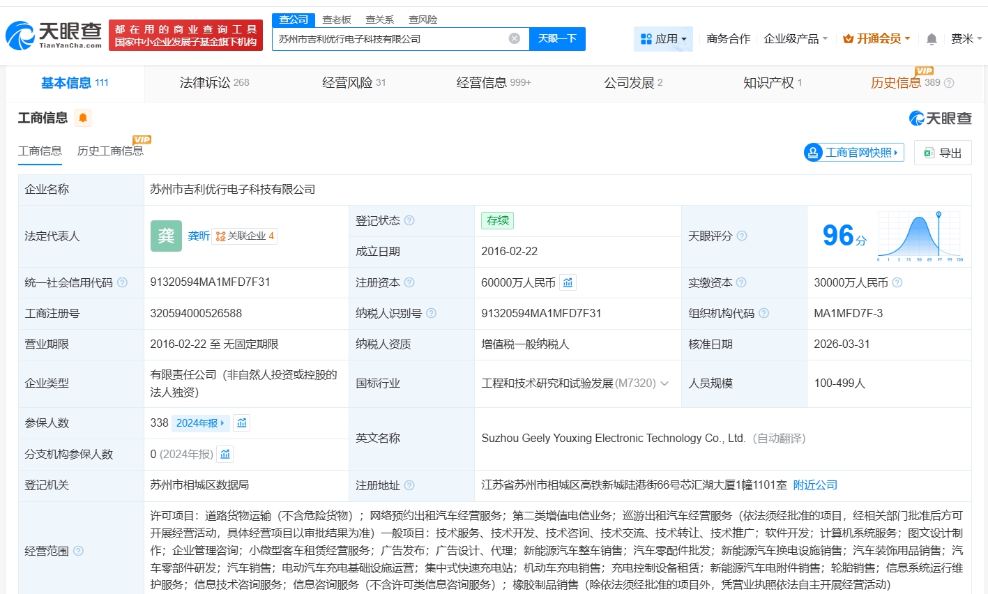 南方财经4月1日电,天眼查App显示,近日,苏州市吉利优行电子科技有限公司发生工商变更,注册资本由3亿人民币增至6亿人民币,增幅100%。该公司成立于2016年2月,法定代表人为龚昕,经营范围包括道路货物运输、网络预约出租汽车经营服务、第二类增值电信业务等,由曹操出行关联公司杭州优行科技有限公司全资持股。