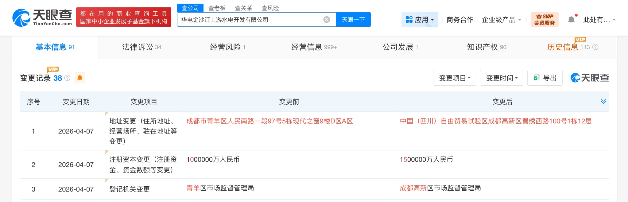 南方财经4月9日电,天眼查工商信息显示,近日,华电金沙江上游水电开发有限公司发生工商变更,注册资本由100亿人民币增至150亿人民币,增幅50%。该公司成立于2006年6月,法定代表人为汪良,经营范围包括水利资源投资及开发、电站的运营管理、电力生产等。股东信息显示,该公司由中国华电集团有限公司、四川铁投康巴投资有限责任公司、西藏开发投资集团有限公司、华电国际(600027)共同持股。